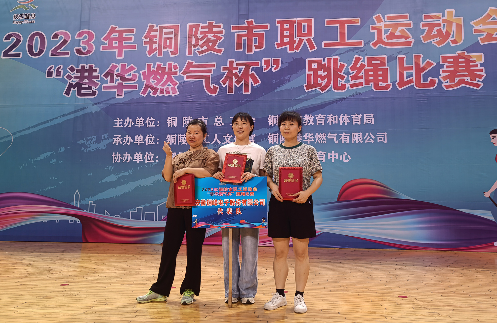 7月15日,由銅陵市總工會(huì)和教育體育局主辦的2023年銅陵市職工運(yùn)動(dòng)會(huì)跳繩比賽在市體育中心舉行。公司選送4名選手參加“女子一分鐘跳繩”比賽項(xiàng)目。經(jīng)過(guò)激烈角逐,公司參賽選手取得優(yōu)異成績(jī),張素珍、孫艷紅包攬冠亞軍,吳艷獲得第六名。