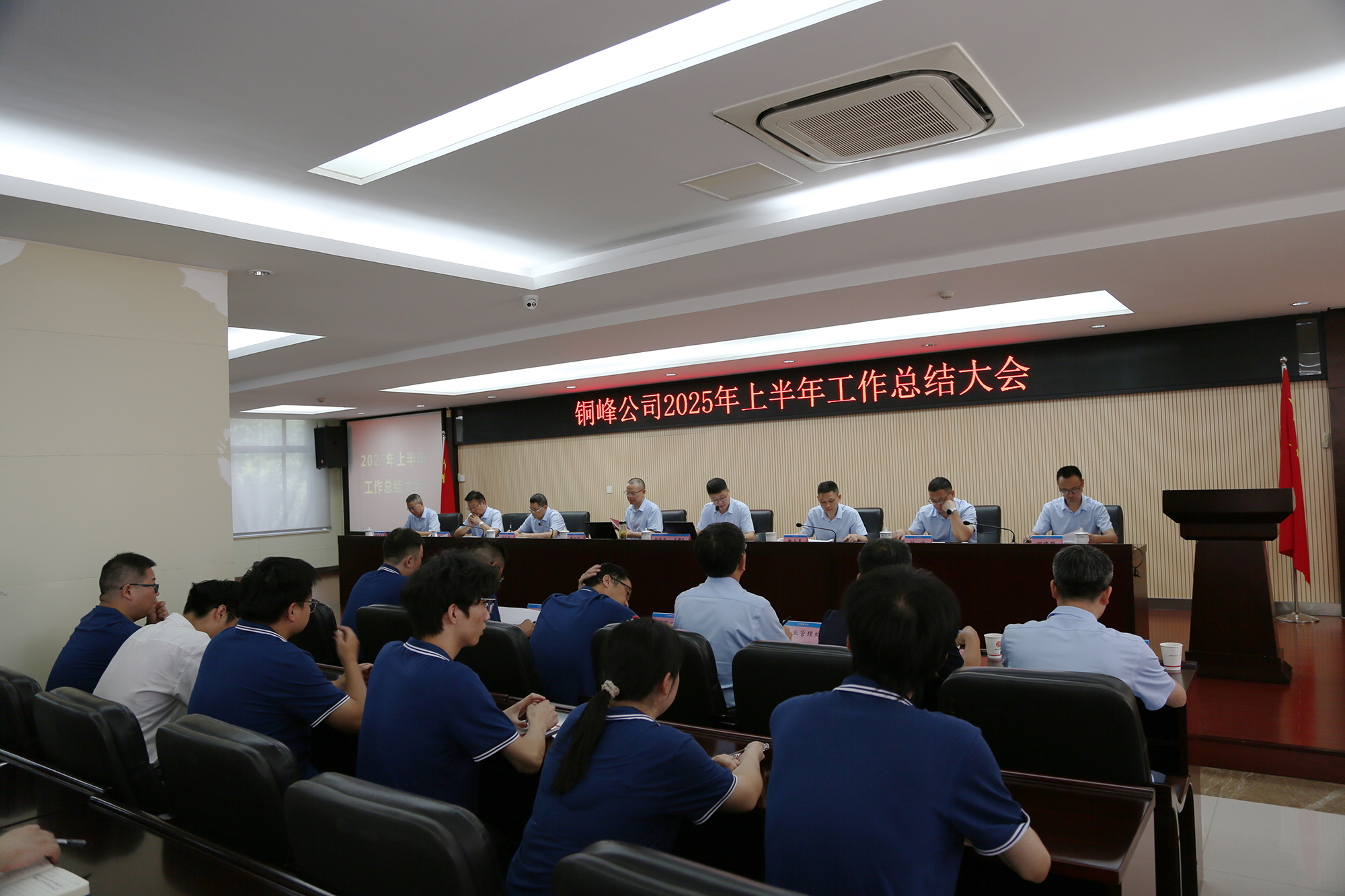 8月8日下午,公司在辦公樓二樓職教室隆重召開2025年上半年工作總結(jié)大會。公司黨政領(lǐng)導班子成員、各生產(chǎn)經(jīng)營單位車間主任和職能部門主管級以上人員、部分職工代表和新進大學生代表等參加會議。會議認真復盤上半年運營成果,深入分析當前經(jīng)營形勢,精心謀劃下半年重點工作。公司黨委書記、董事長黃明強出席會議并作總結(jié)講話,對公司上半年工作進行總體分析,對下半年工作提出要求。總經(jīng)理鮑俊華主持會議,并對公司各單位和部門的具體工作進行點評。公司各生產(chǎn)單位和相關(guān)職能部門分別匯報了上半年主要工作及下半年工作計劃。
